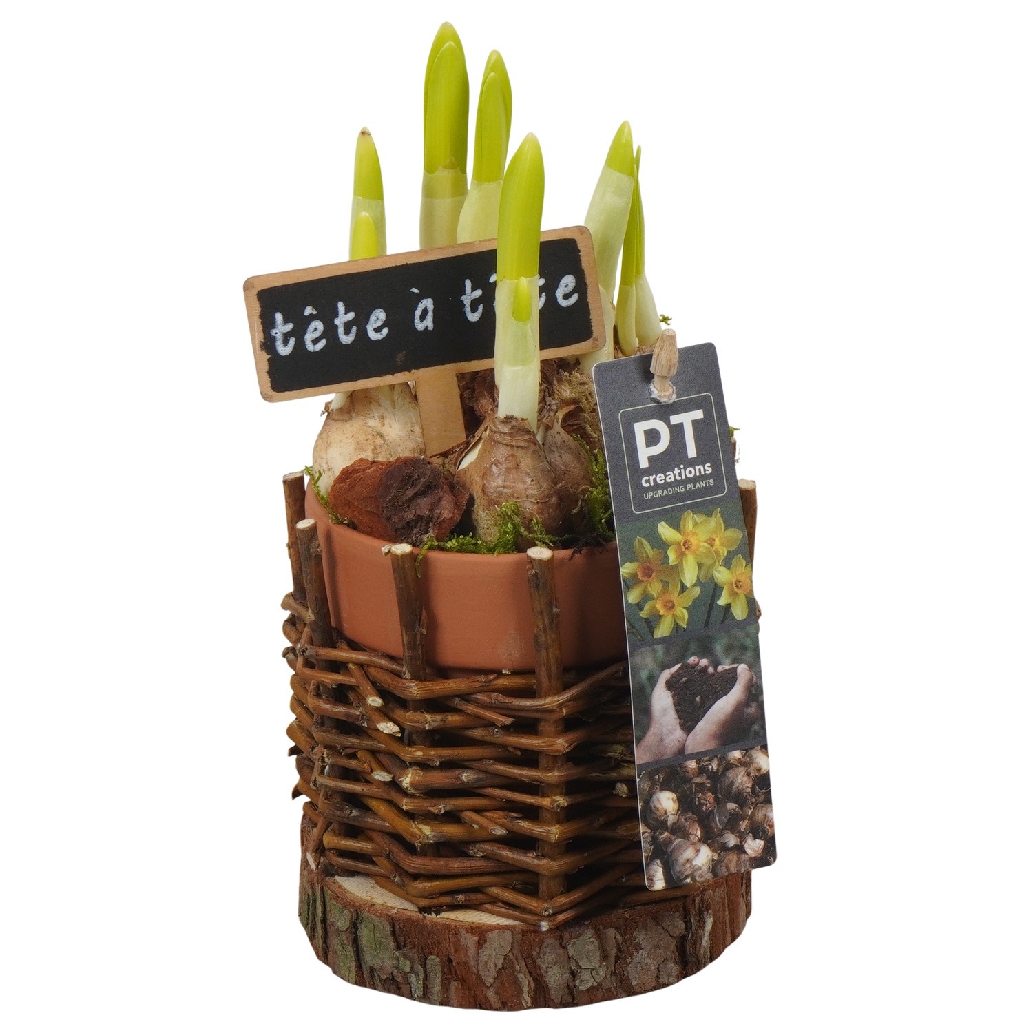 Ptn8752 Arrangement Narcissus In Rieten Pot