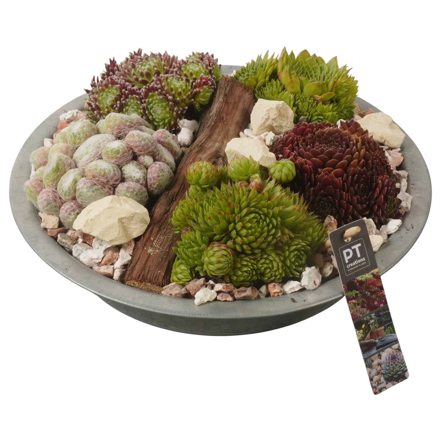 Pts7333 Arrangement Sempervivum In Metalen Schaal